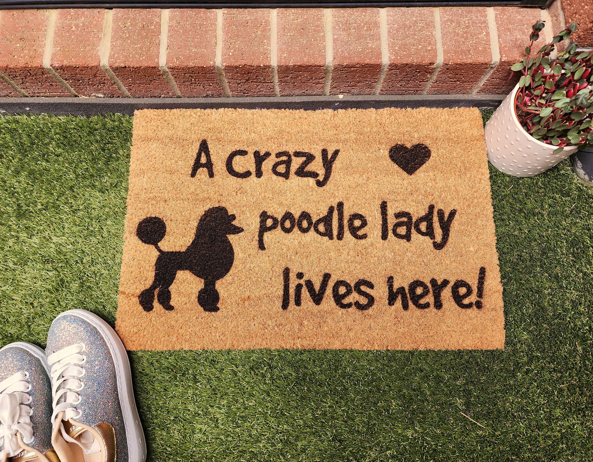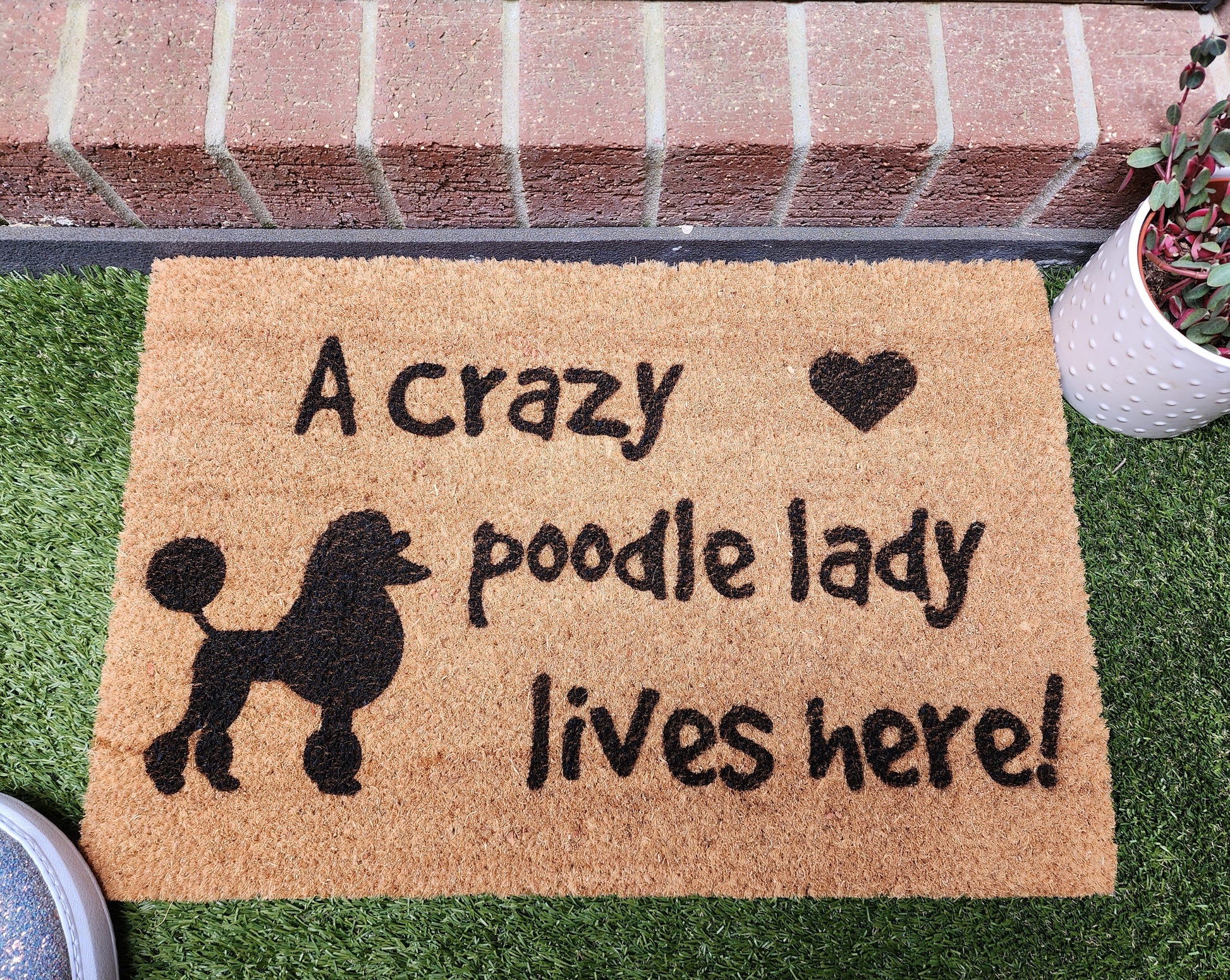 A Crazy Poodle Lady Lives Here fun door mat.
