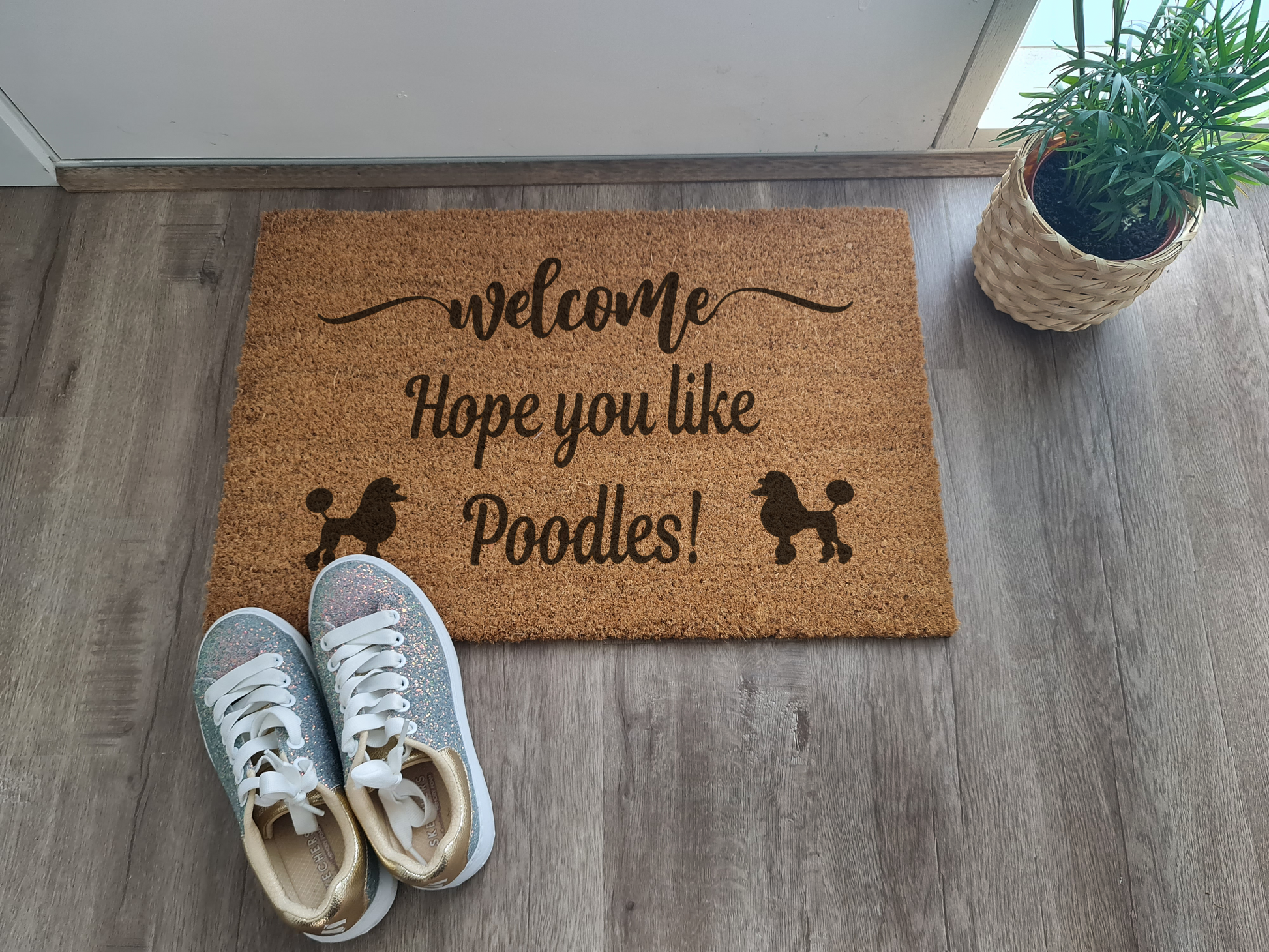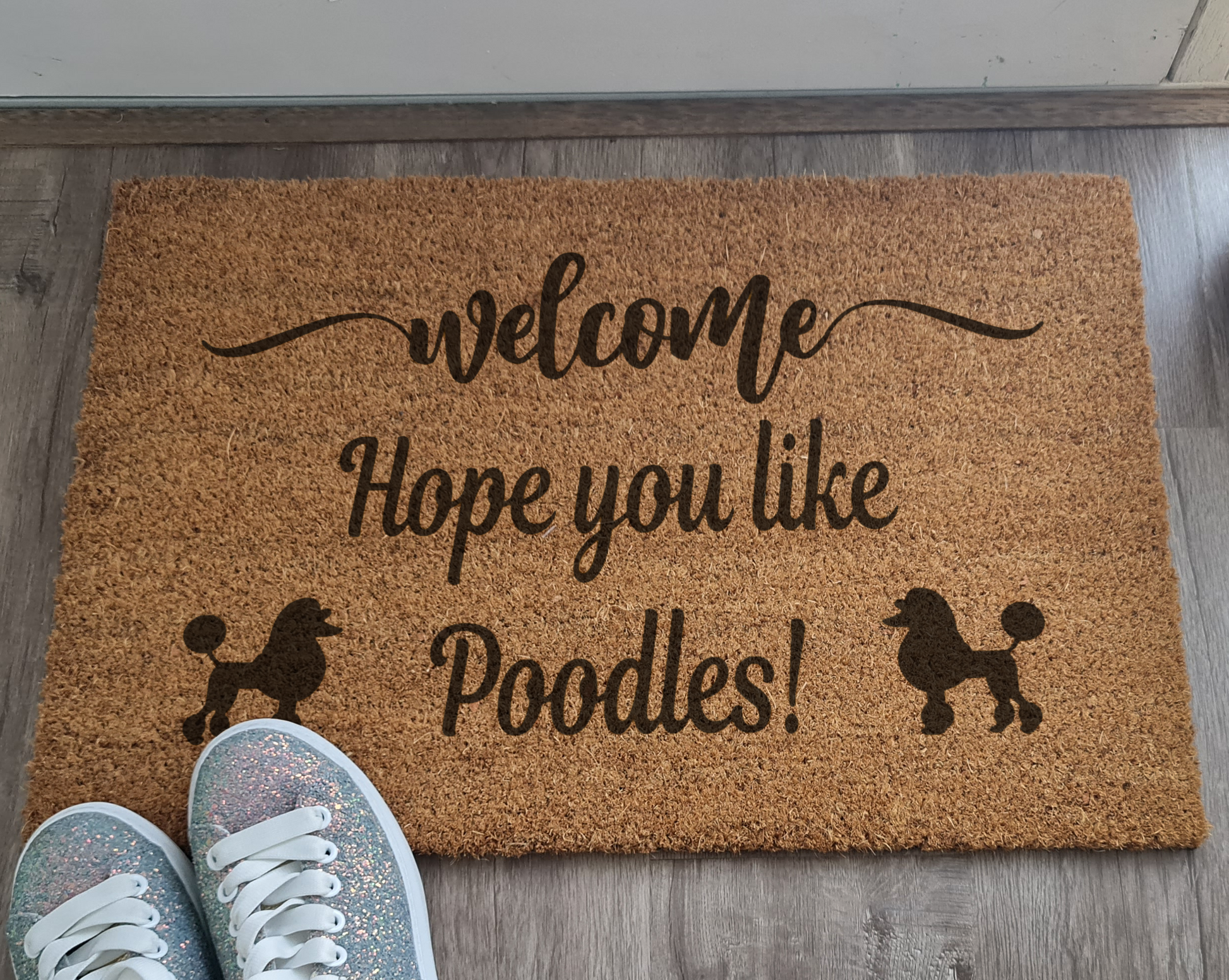WELCOME HOPE YOU LIKE POODLES CUSTOM DOOR MAT